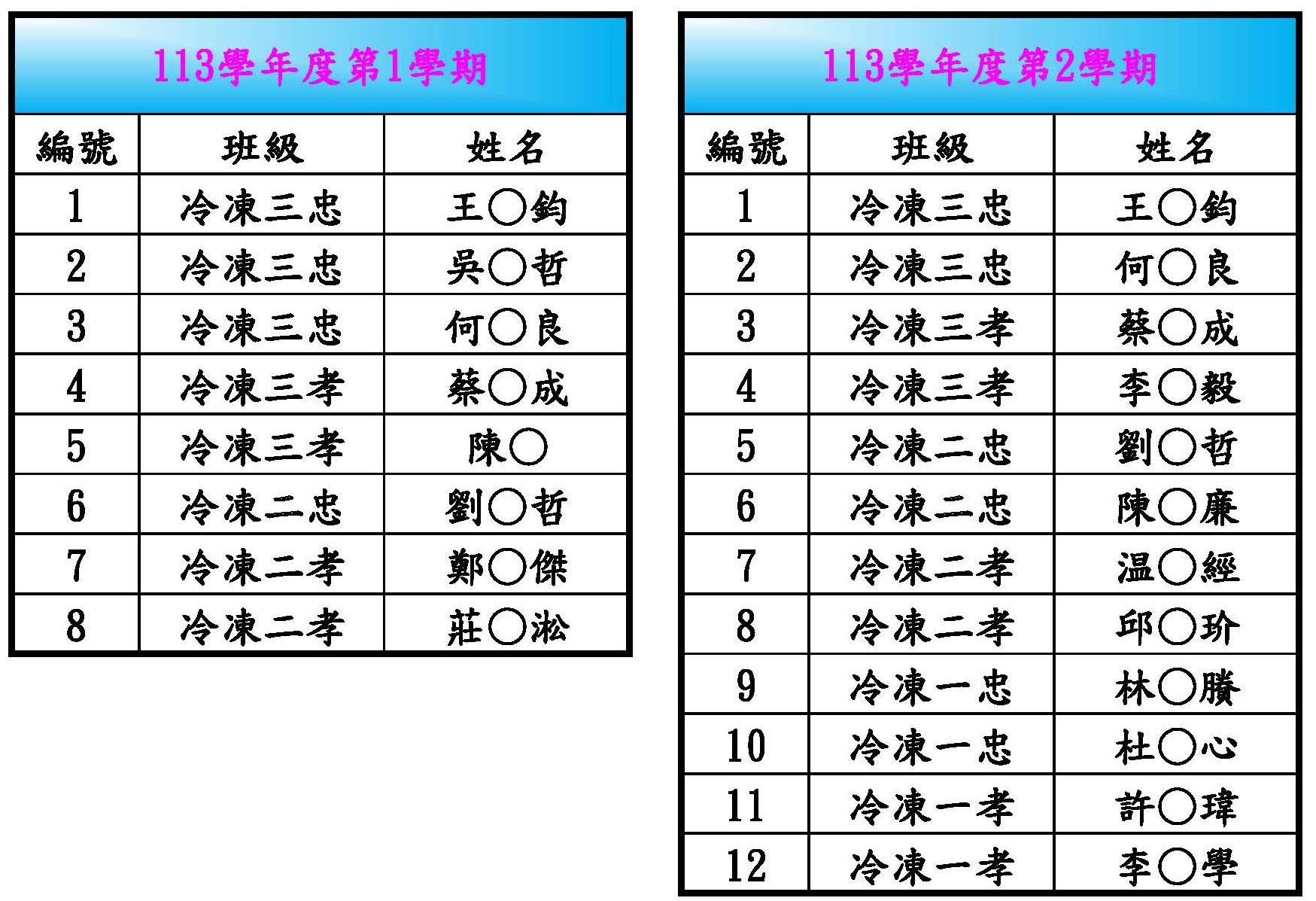 113學年度台灣日立江森自控股份有限公司學生獎學金獲獎名單