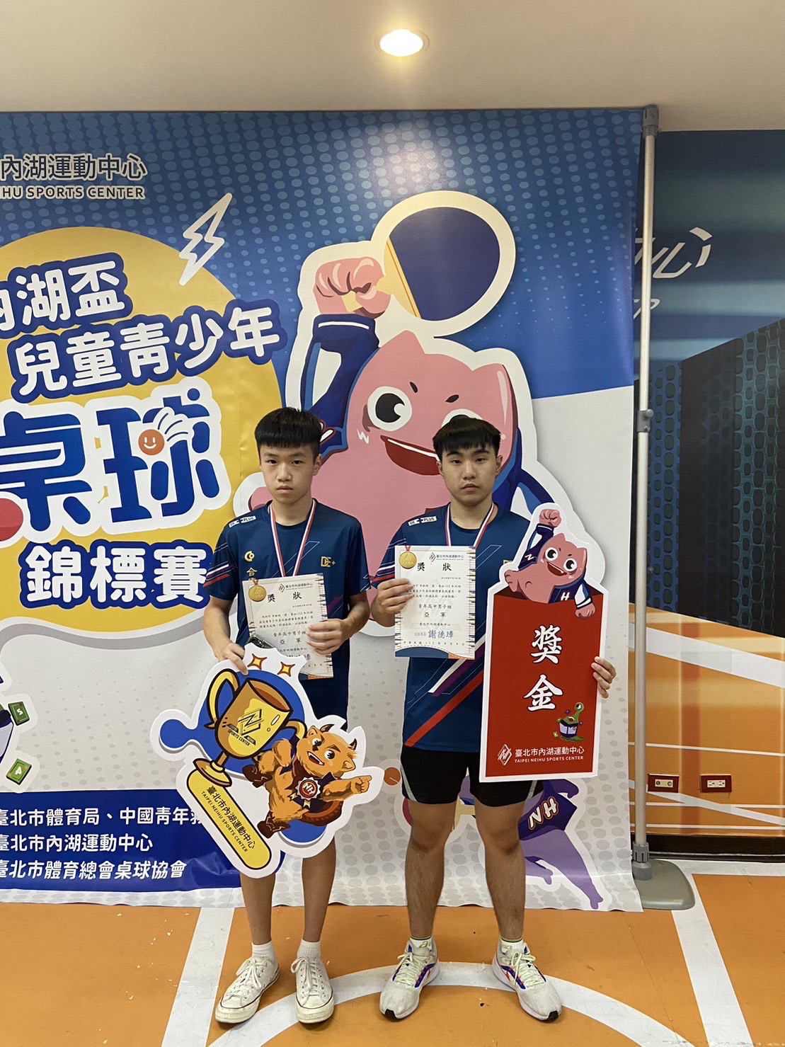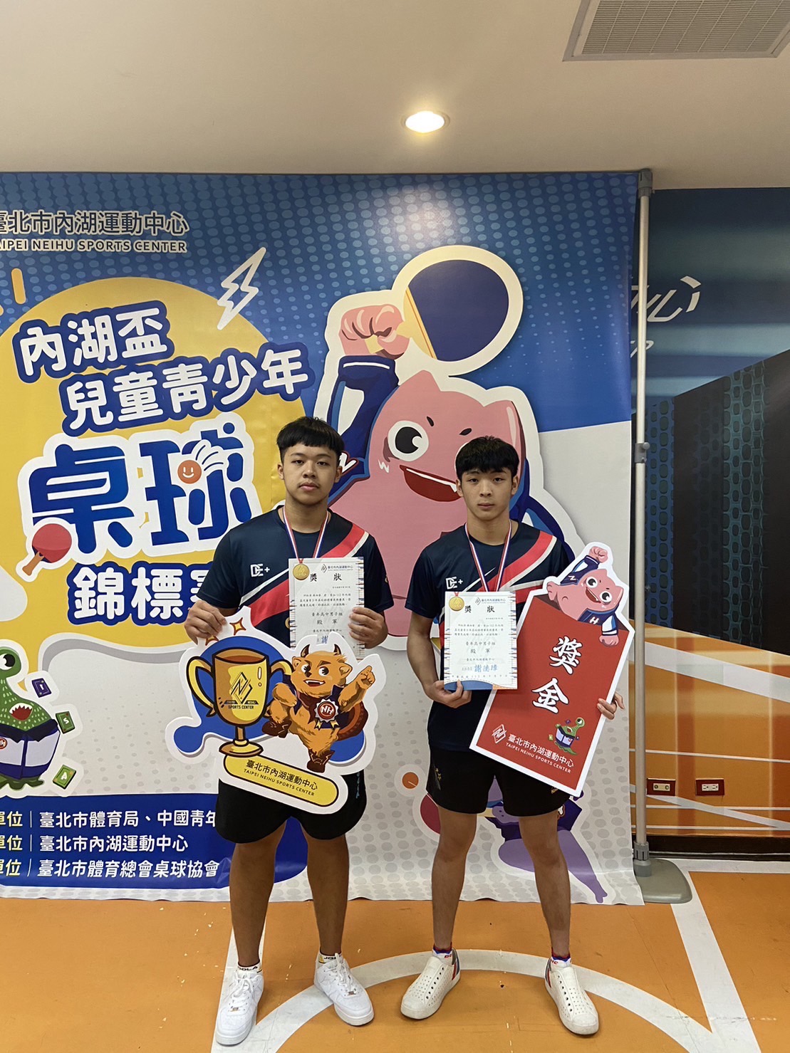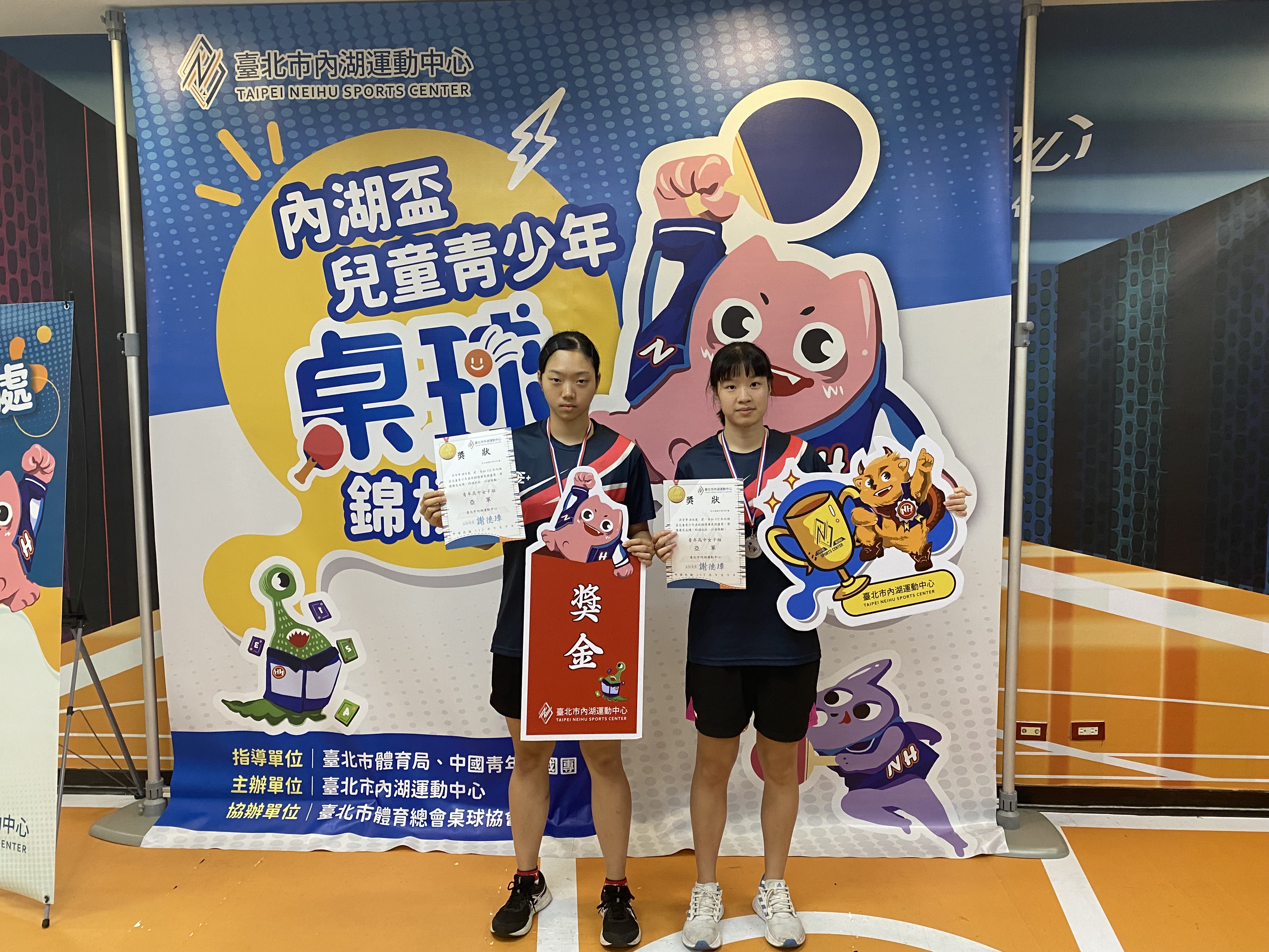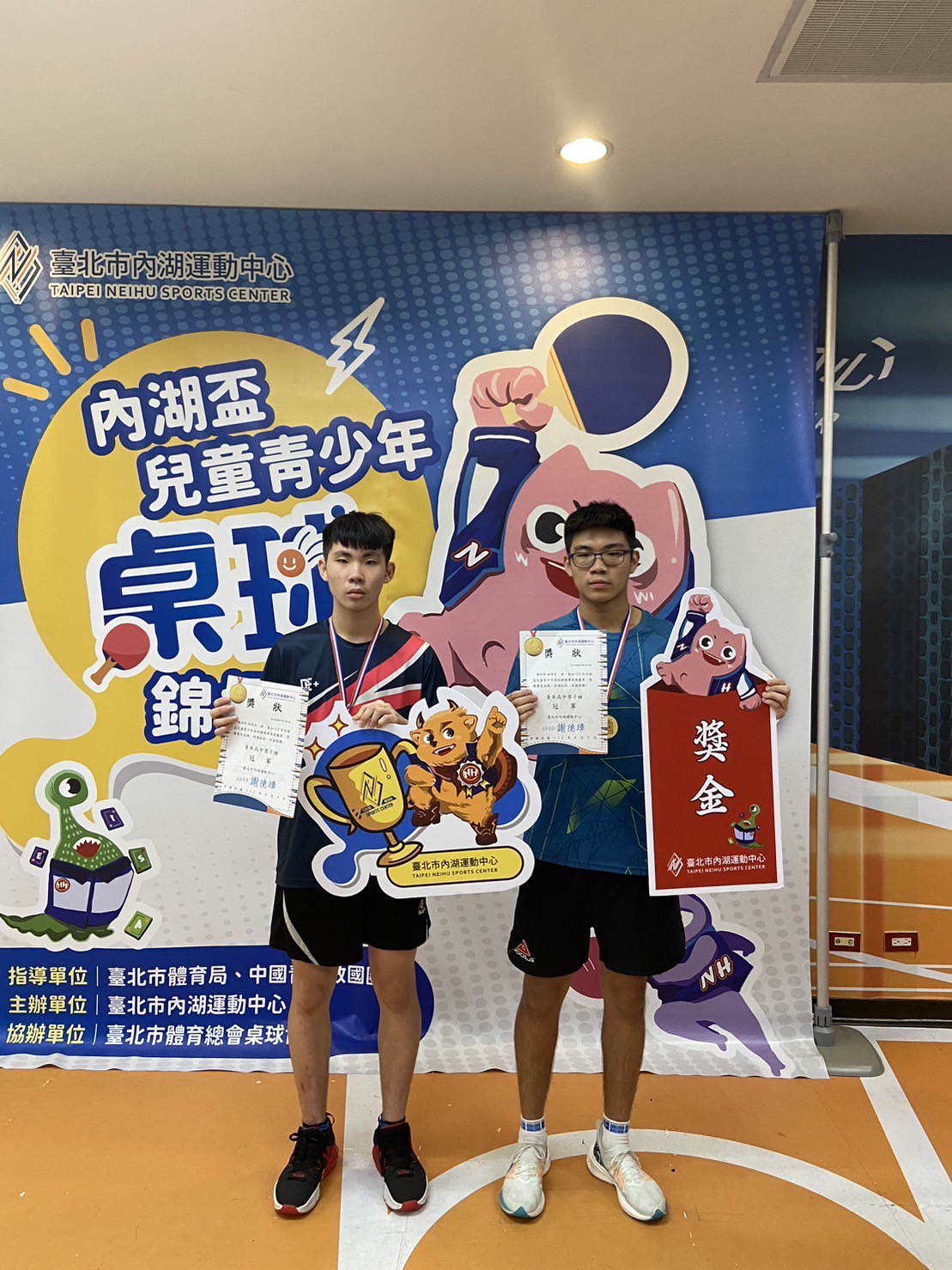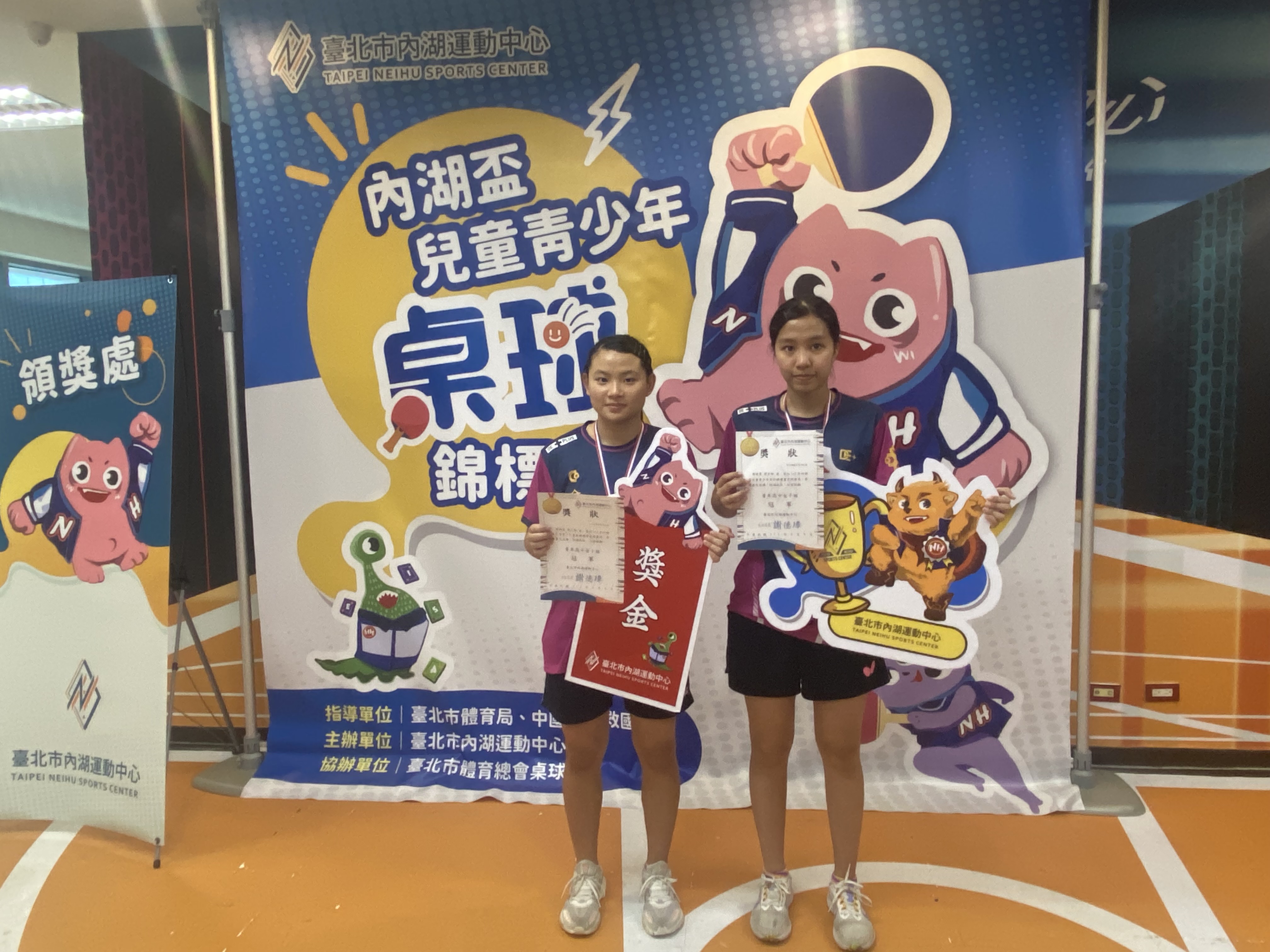 內湖盃桌球錦標賽 高男組雙打 1陳承恩、林恩丞 2施相宇、李振碩 4蘇昶睿、邱鈺清 高女組雙打 1陳皓萱、簡宏卿 2溫佳葳、吳育寧