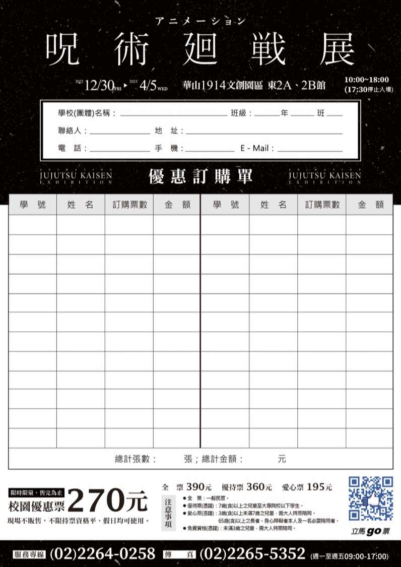 二、「咒術迴戰」特展展覽訊息如下: