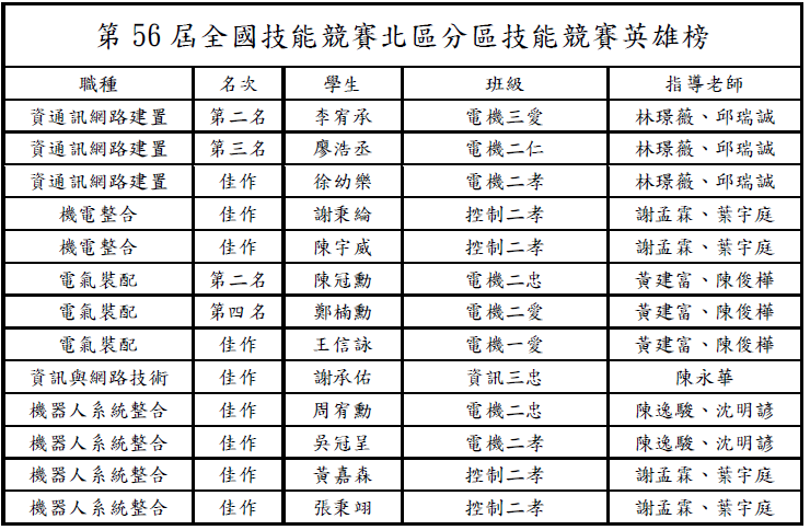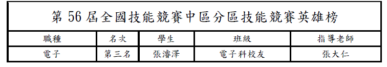 賀!!!本校學生參加第56屆全國技能競賽初賽-榮獲二銀二銅一第四名及九佳作