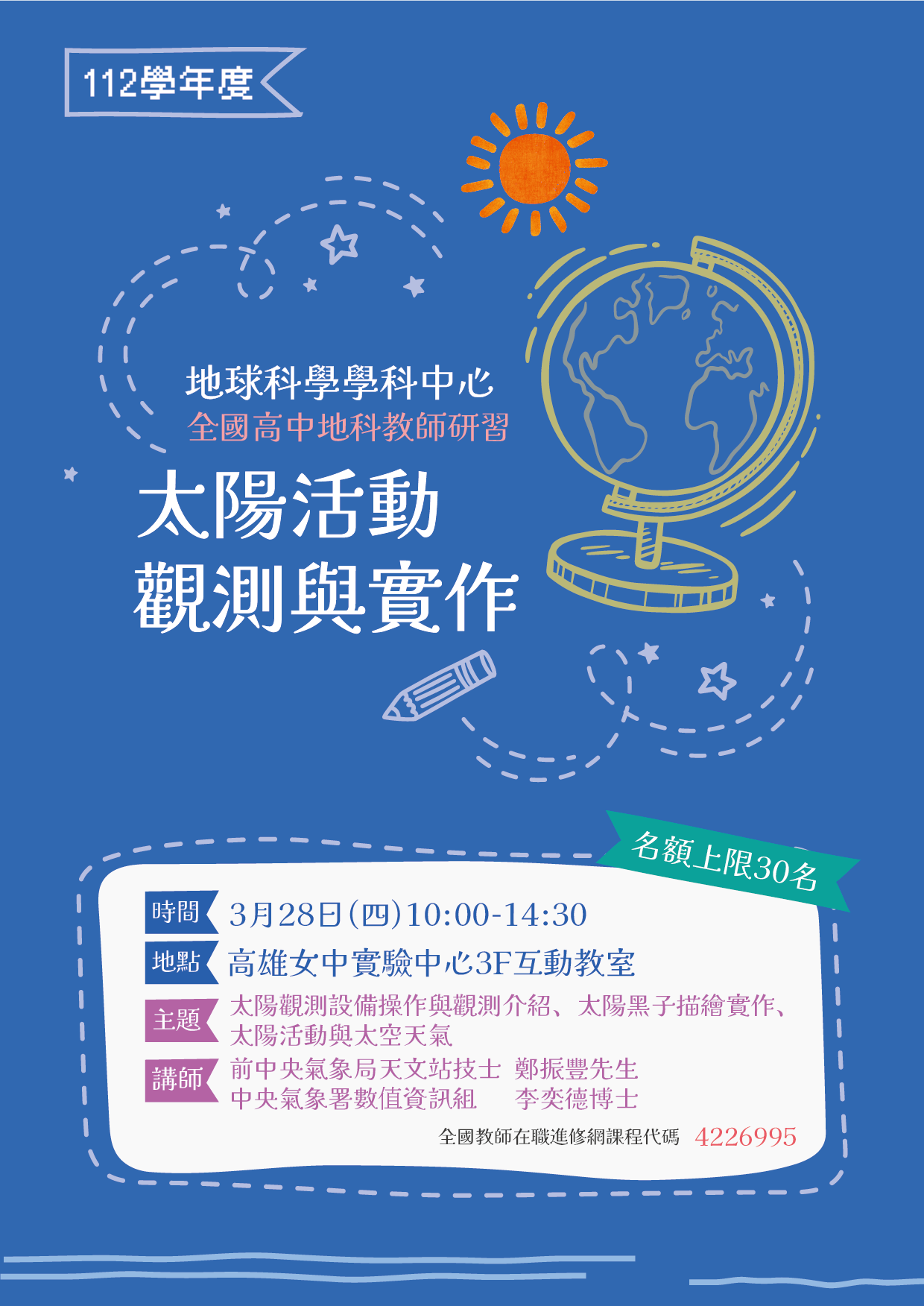 高中地科教師研習─太陽活動觀測與實作」研習活動辦法