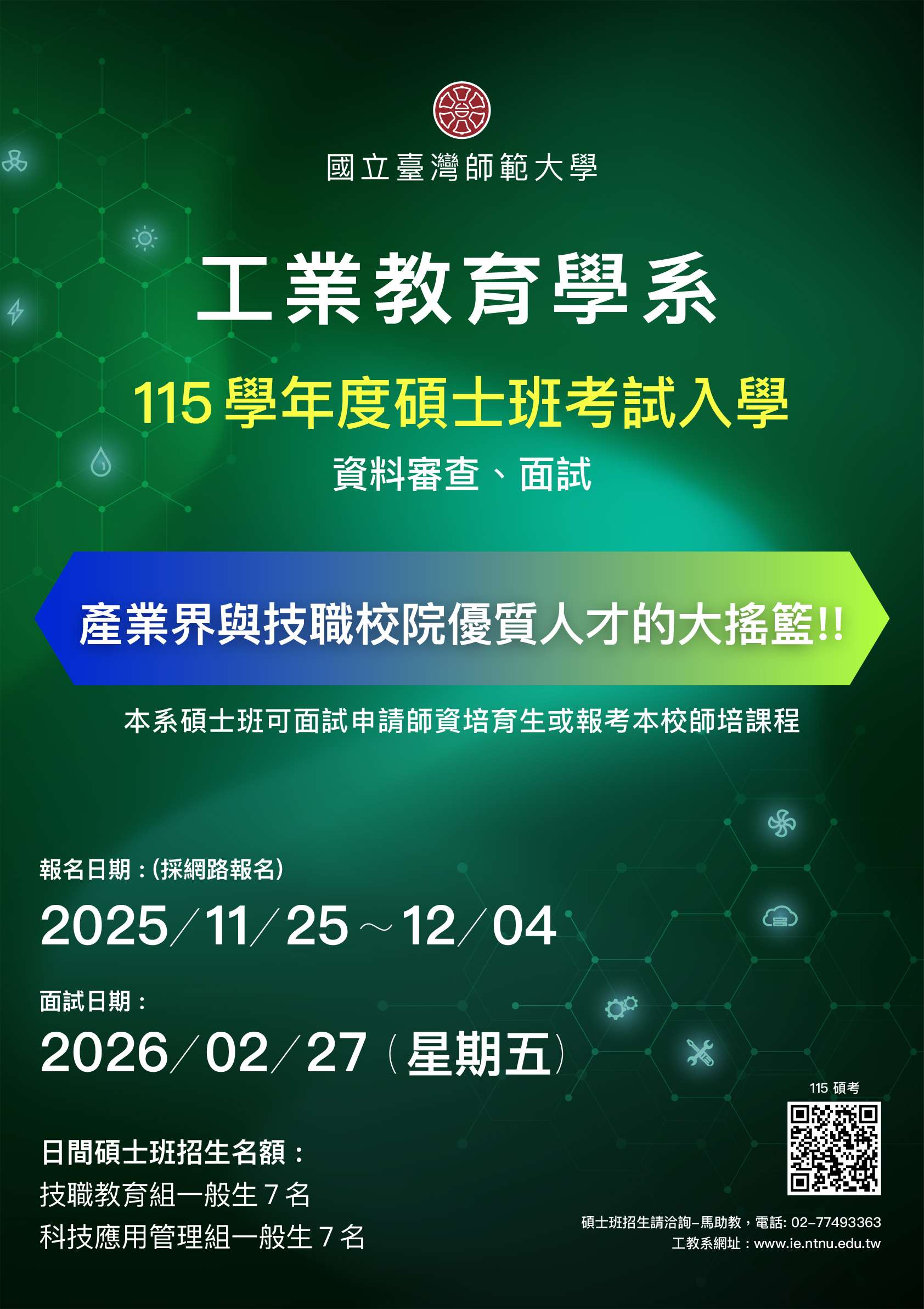 (二)碩士在職專班:https://enroll.itc.ntnu.edu.tw /EnrollP/MsPEntry。