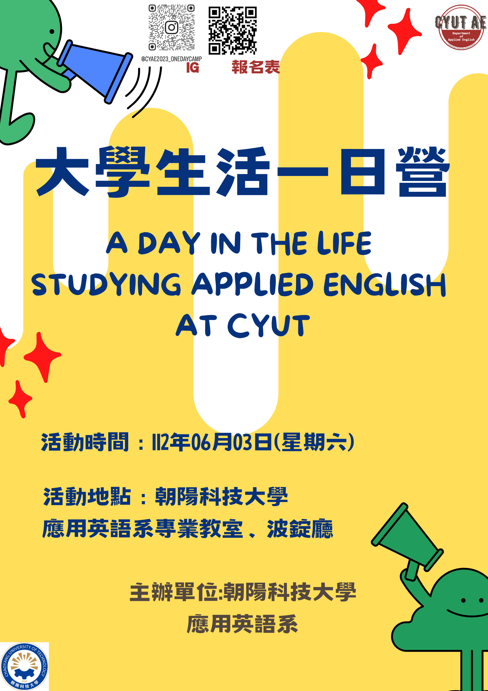 五、公告錄取名單:於112年5月29日(星期一)公告於朝陽科技大學應用英語系網頁最新消息,網址:http://aecyut.cyut.edu.tw/。