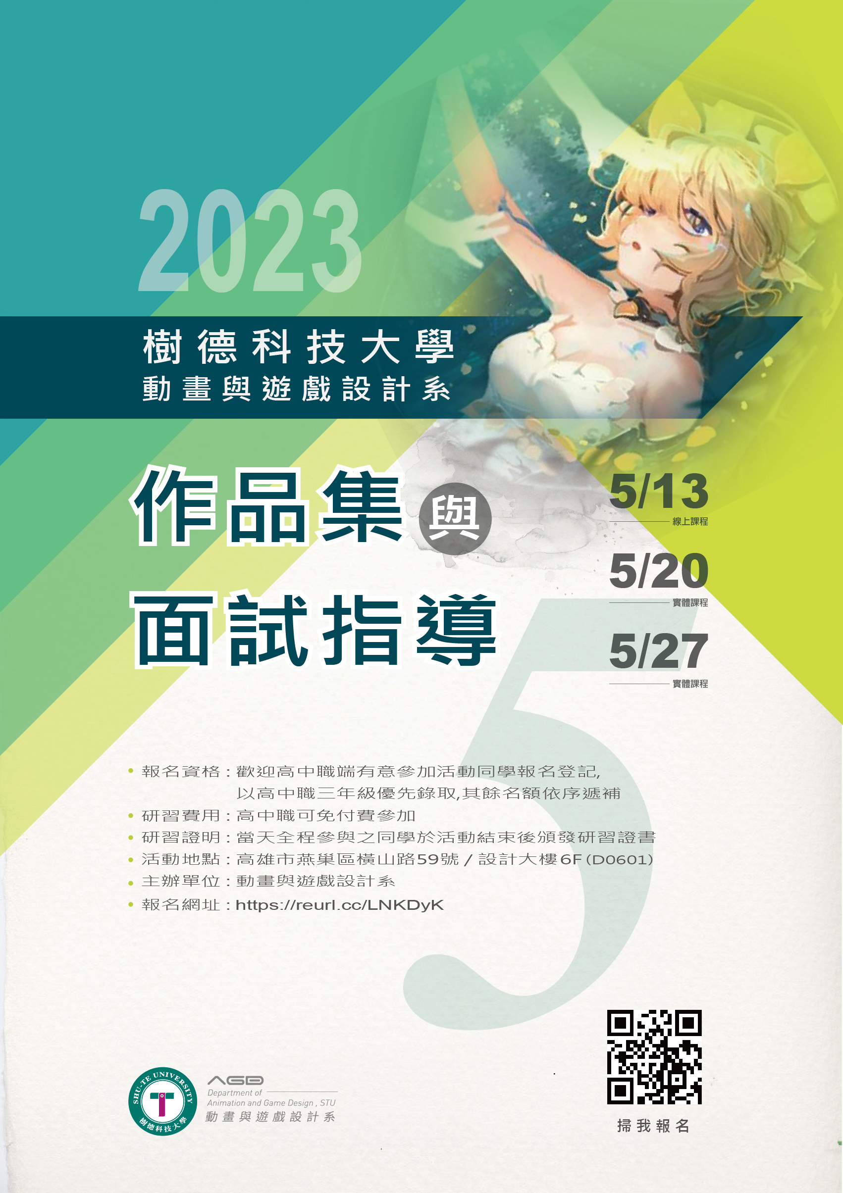 二、活動時間:【線上課程】112年5月13日(六)及【實體課程】112年5月20日及5月27日(六),共計3場次,實體課程研習地點:樹德科技大學設計大樓6樓D0601教室。
