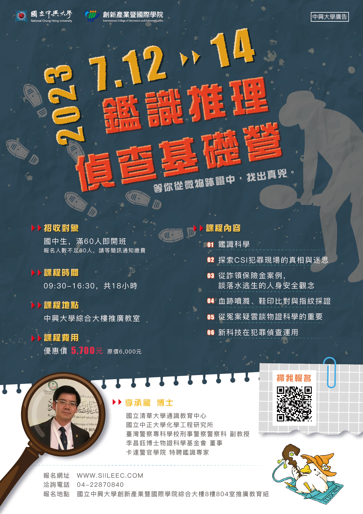 四、聯絡窗口:國立中興大學創新產業暨國際學院推廣教育組,電話 (04)22870840,詳情請參簡章與海報。