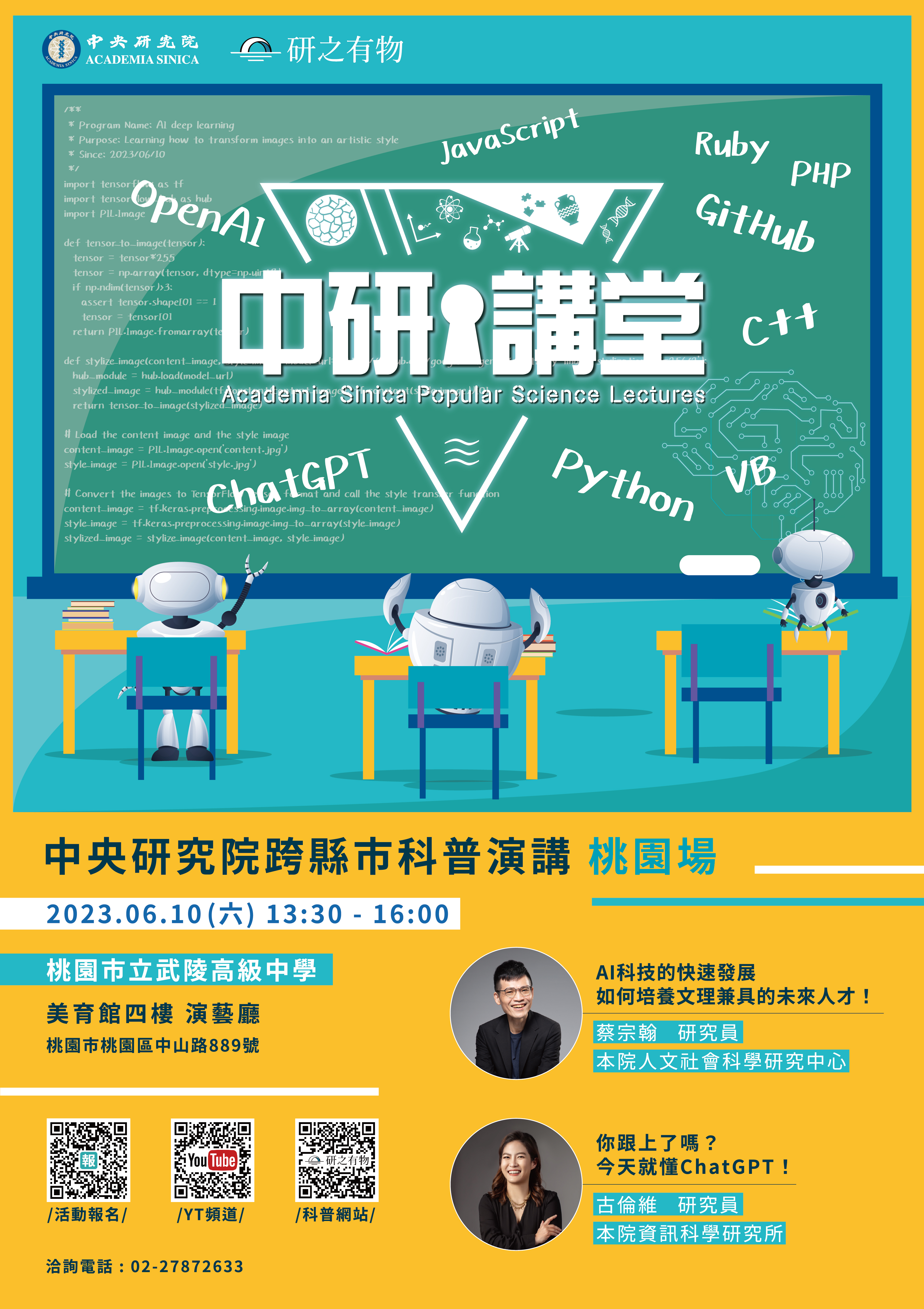四、如無法親臨參與,活動後可至本院YouTube頻道觀看錄影精華,網址:https://www.youtube.com/@academiasinica4594