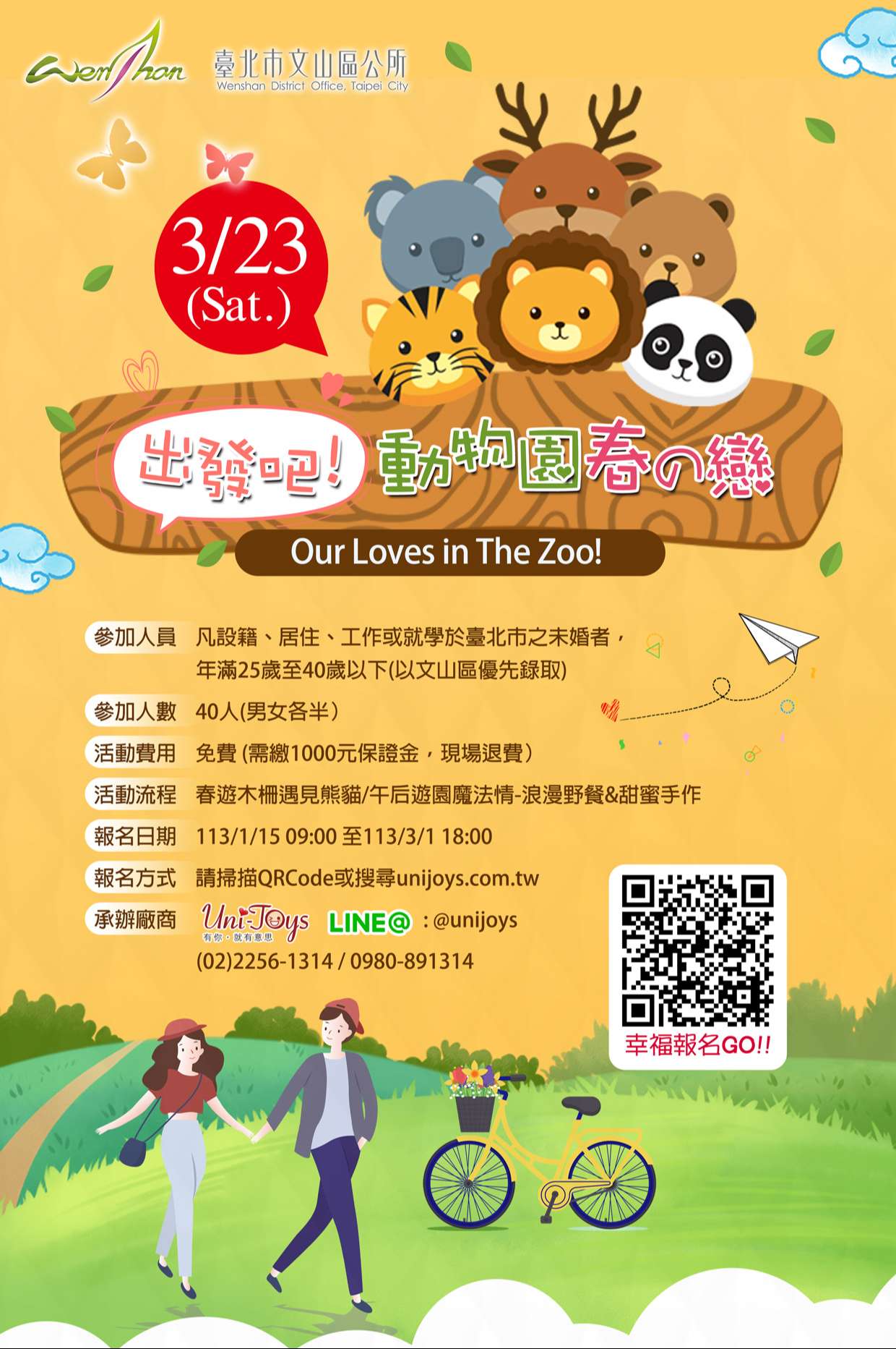 為辦理113年度文山區公所單身聯誼活動「出發吧!動物園春の戀」。