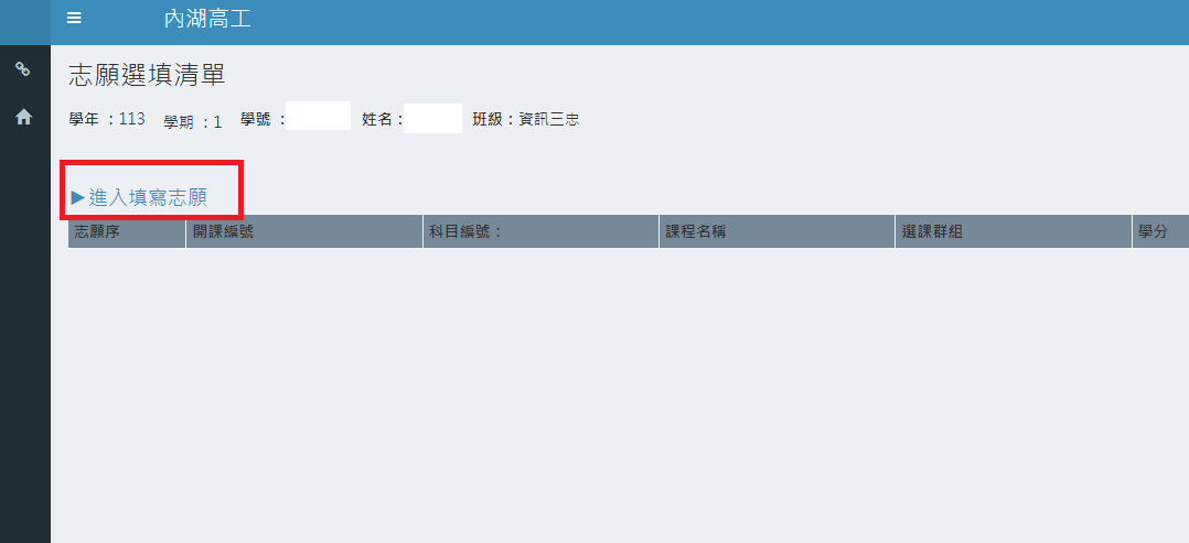 【選課系統】 >> 【跨班選修】 >>【志願選填】