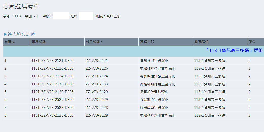 (2)高三實習選修:高二升高三電子科、資訊科、應英科同學。