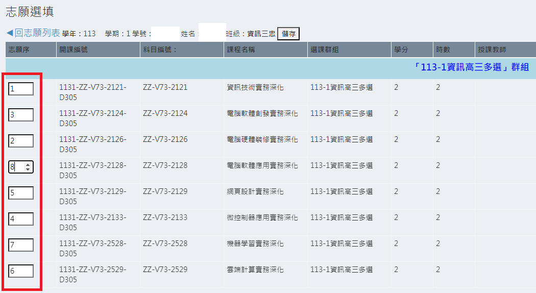【步驟6】填寫志願,志願不能重複,最後按「儲存」即完成
