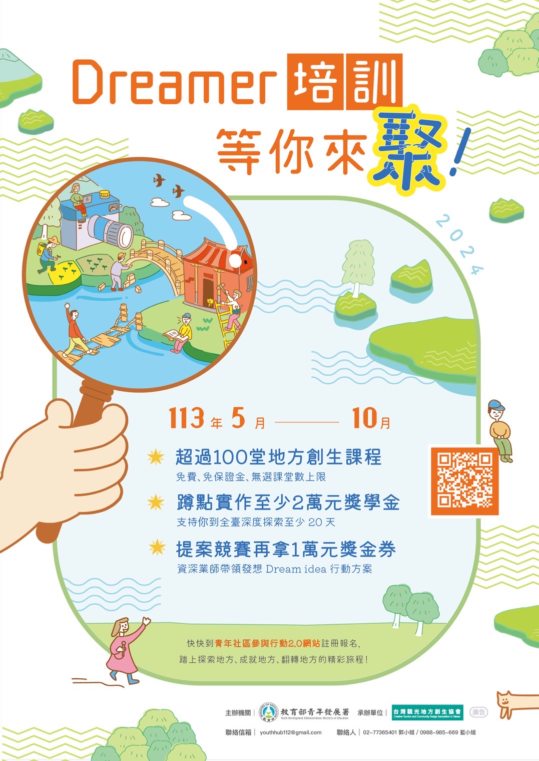 二、前揭在地課程提供15至35歲青年,不限堂數免費參加;另18至35歲青年可進行蹲點實作,並提供至少新臺幣2萬元之獎學金(至少20天),歡迎鼓勵學生報名參與。