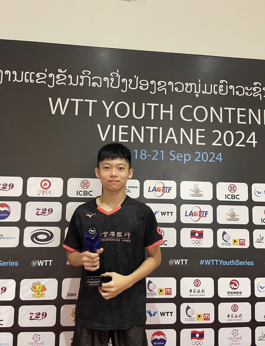 本校 桌球隊 黃培祐參加2024WTT 寮國青少年挑戰賽,榮獲15歲組男子單打冠軍。