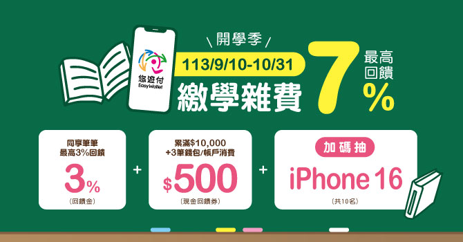 悠遊付繳納學雜費回饋及抽獎活動