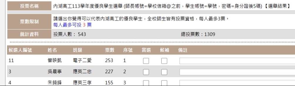 113學年度臺北市立內湖高級工業職業學校優良學生。