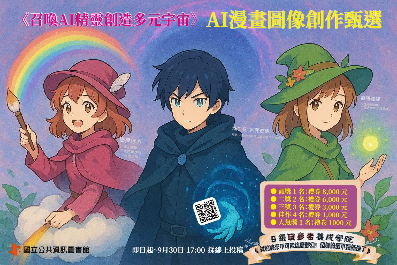 一、本活動以「我的未來職業想像」為主題,鼓勵14至22歲 (民國92至100年出生)青少年以生成式AI出圖後進行後製 編修,採網路投稿,投稿時間自即日起至114年9月30日17 時止。