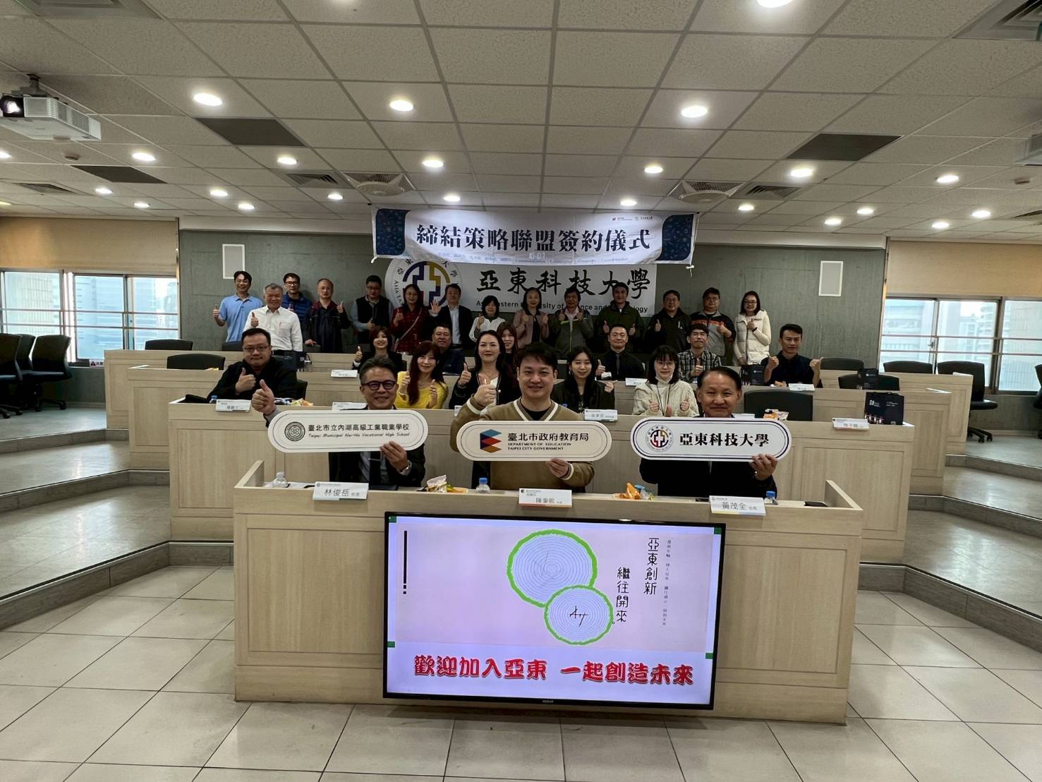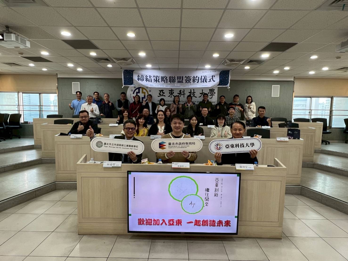 本校於2/5日完成與亞東科大MOU簽署儀式,可以期待兩校接下來擦出驚人合作火花,共同培養英語簡報人才,亞東最強護理系師資將於本校開設護理專業微課程,培育本校電子電機結合醫療專業新世代人才,並共同打遍天下無敵手,飛往世界各地參加發明展及科展,共同發表專利。