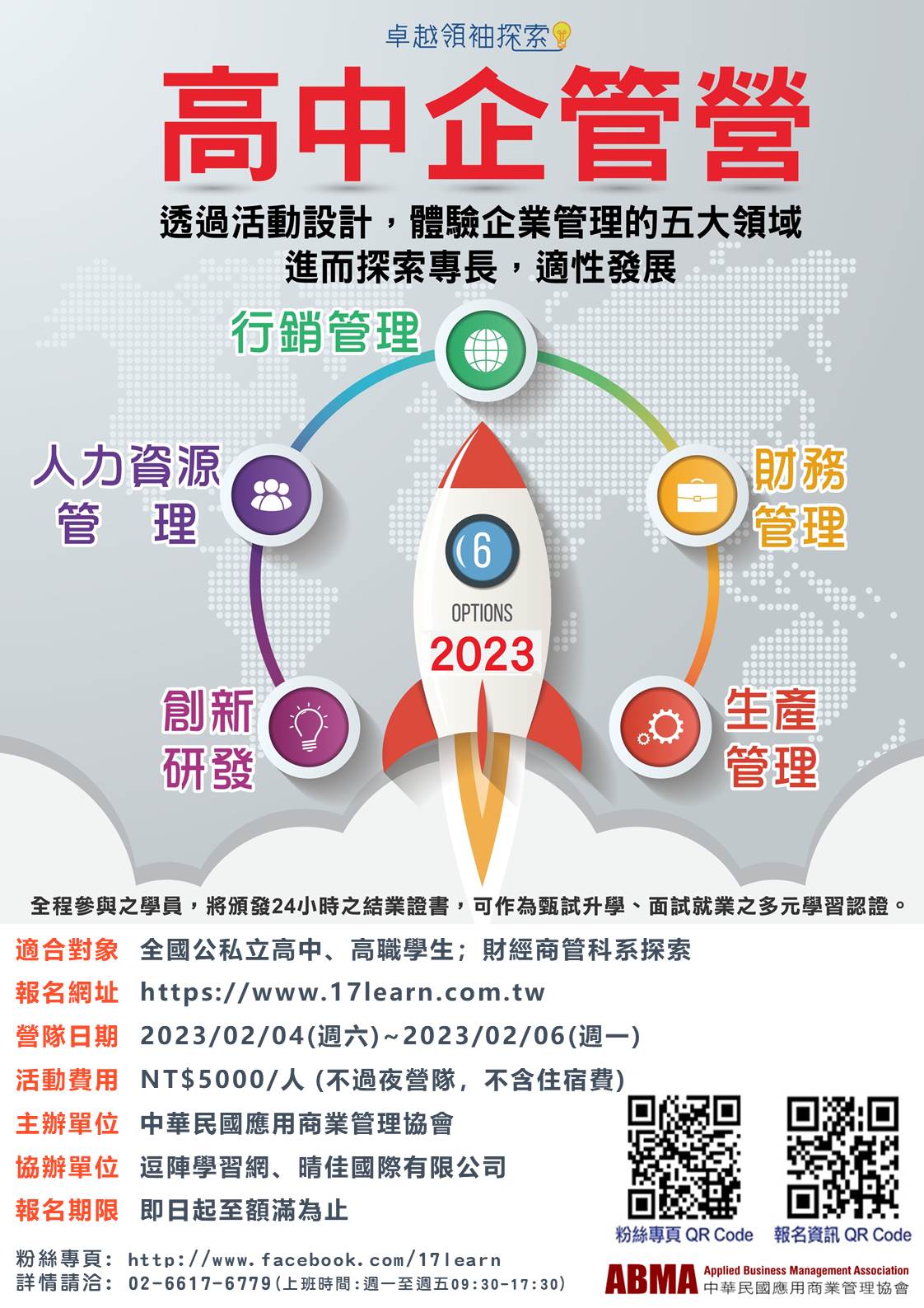三、營隊日期:2023年02月04日(週六)~02月06日(週一)