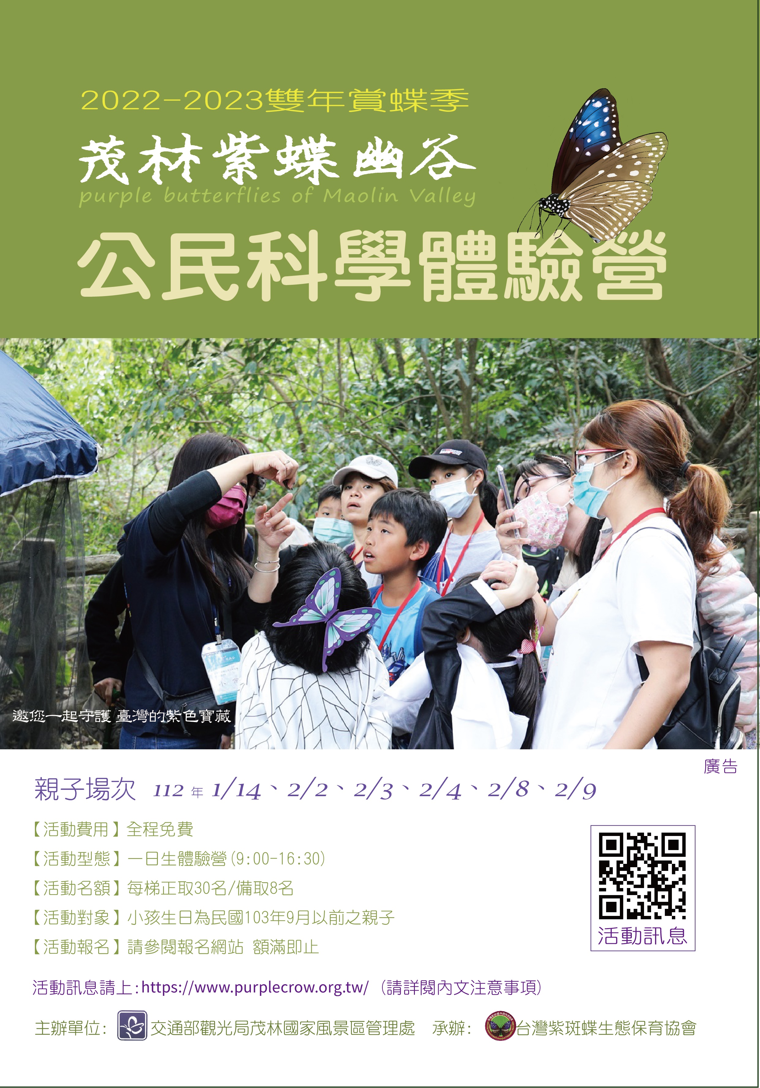 二、旨揭活動為讓更多人喜歡茂林紫斑蝶生態,認識紫斑蝶之美,並增進環境保育概念,資訊如下: