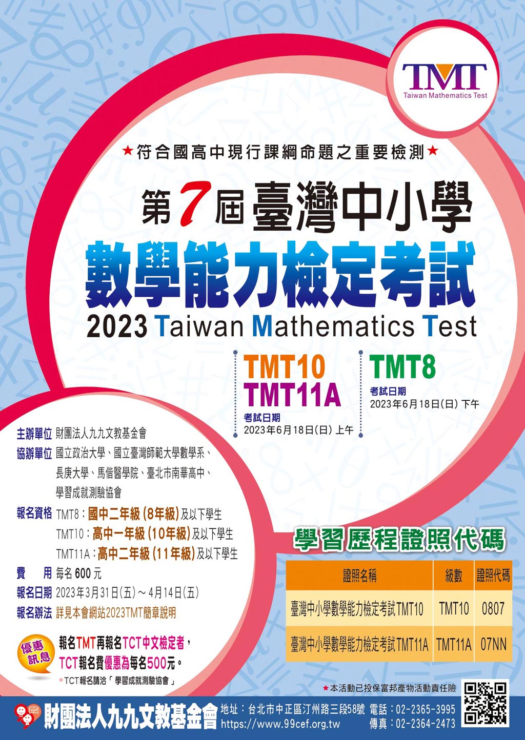 四、報名費用每名學生600元。為幫助(中)低收入戶同學,財團法人九九文教基金會將補助每名學生免收工本費參加本次測驗,計200個名額, 額滿即不再受理報名。申請辦法請參閱該會網站。