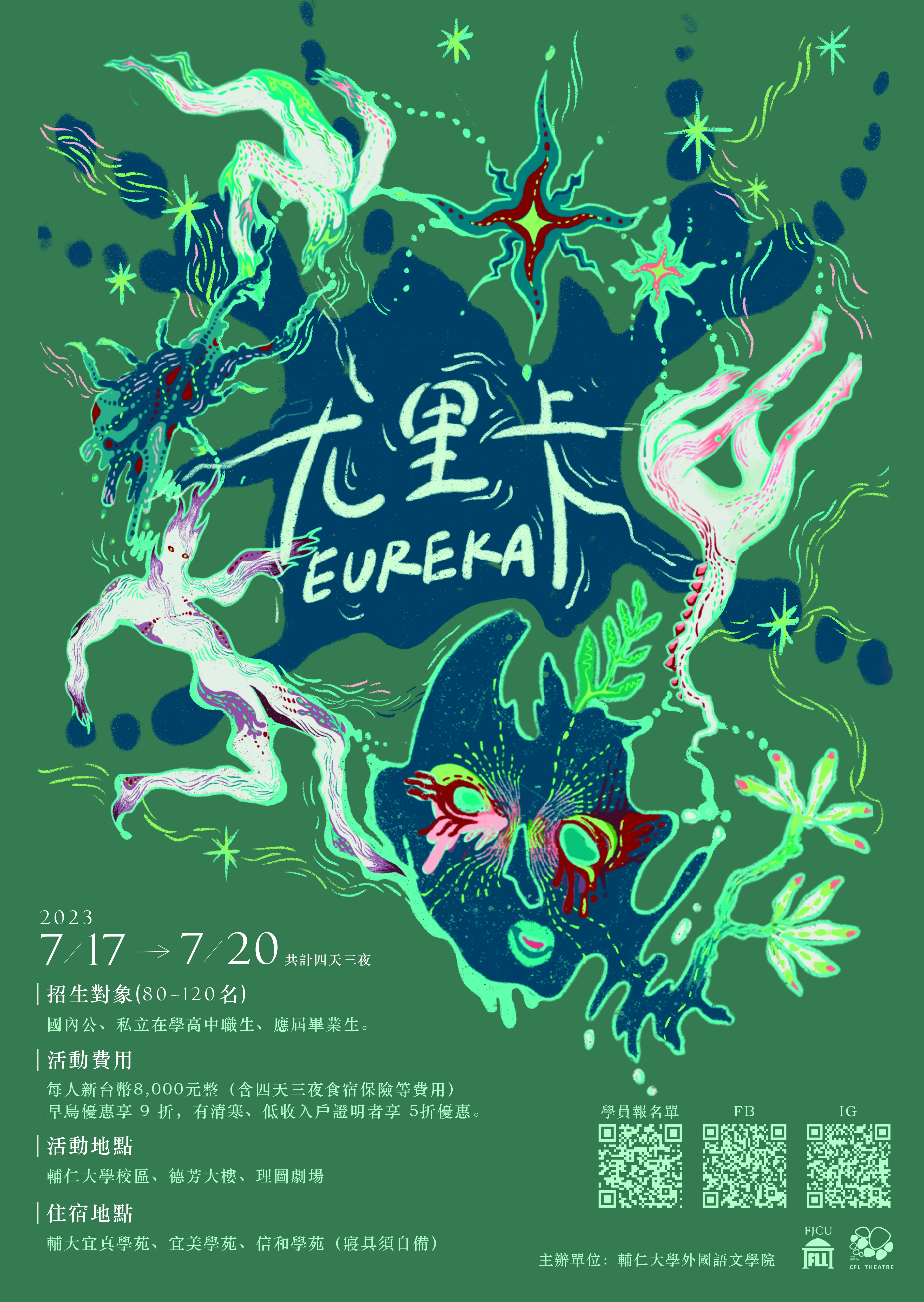 六、報名方式及詳細活動內容:請至「輔大戲劇營-尤里卡: 變形記」網站。