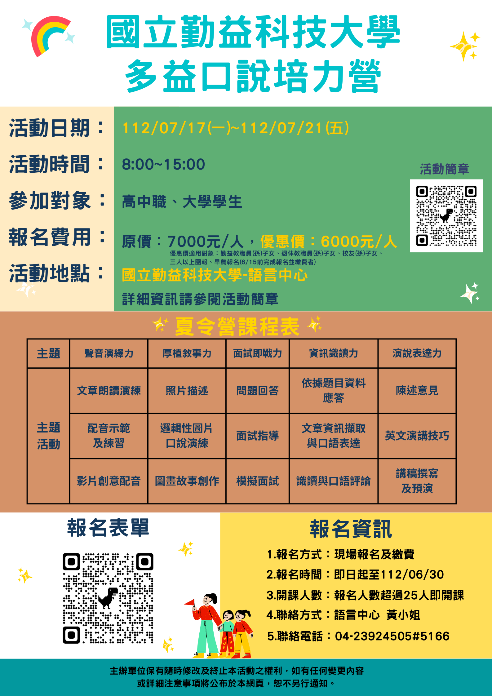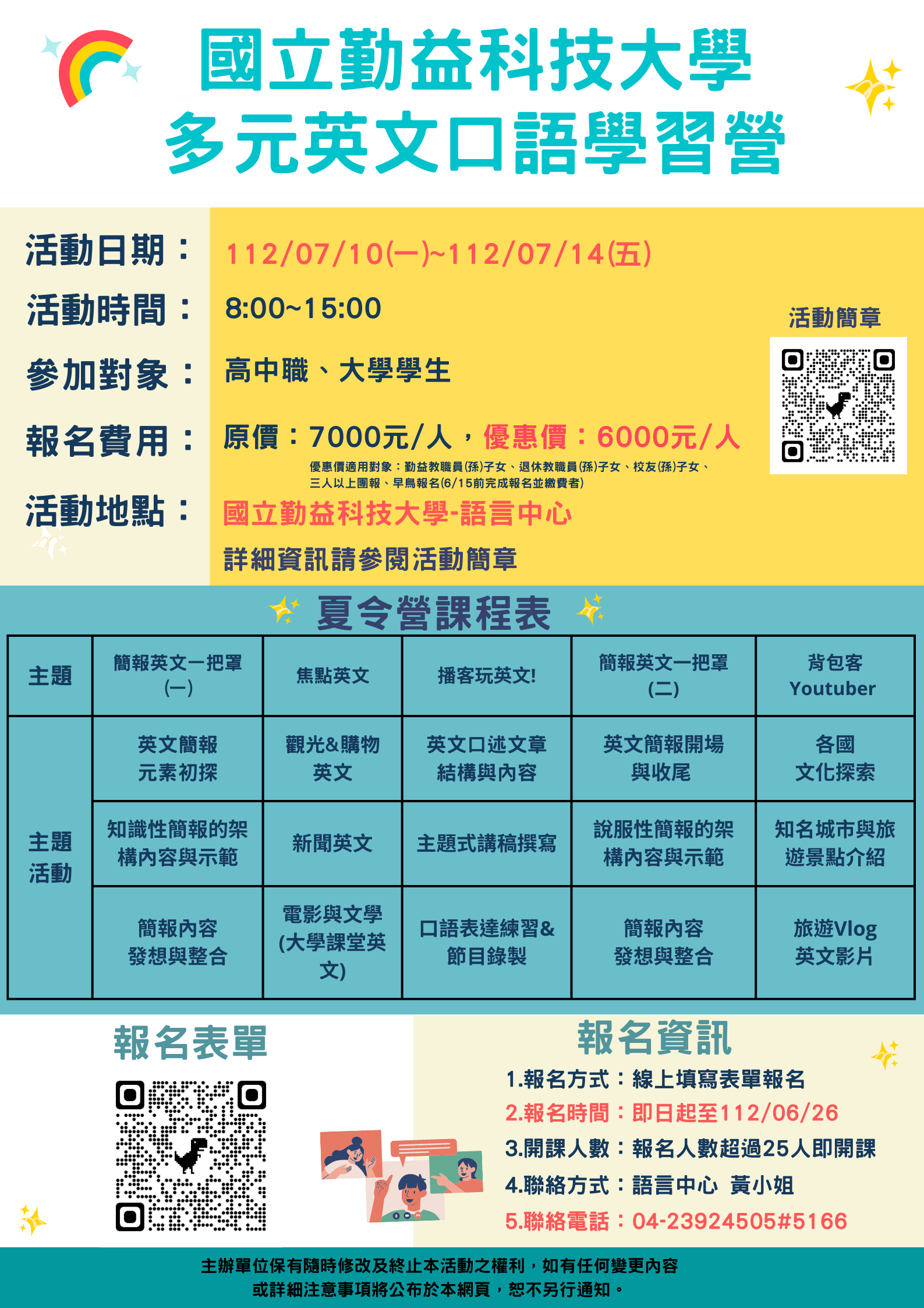 二、招生及報名訊息可至該校語言中心網頁查詢,網址: https://lgc.ncut.edu.tw/p/405-1029-73071,c82.php?Lang=zh-tw。