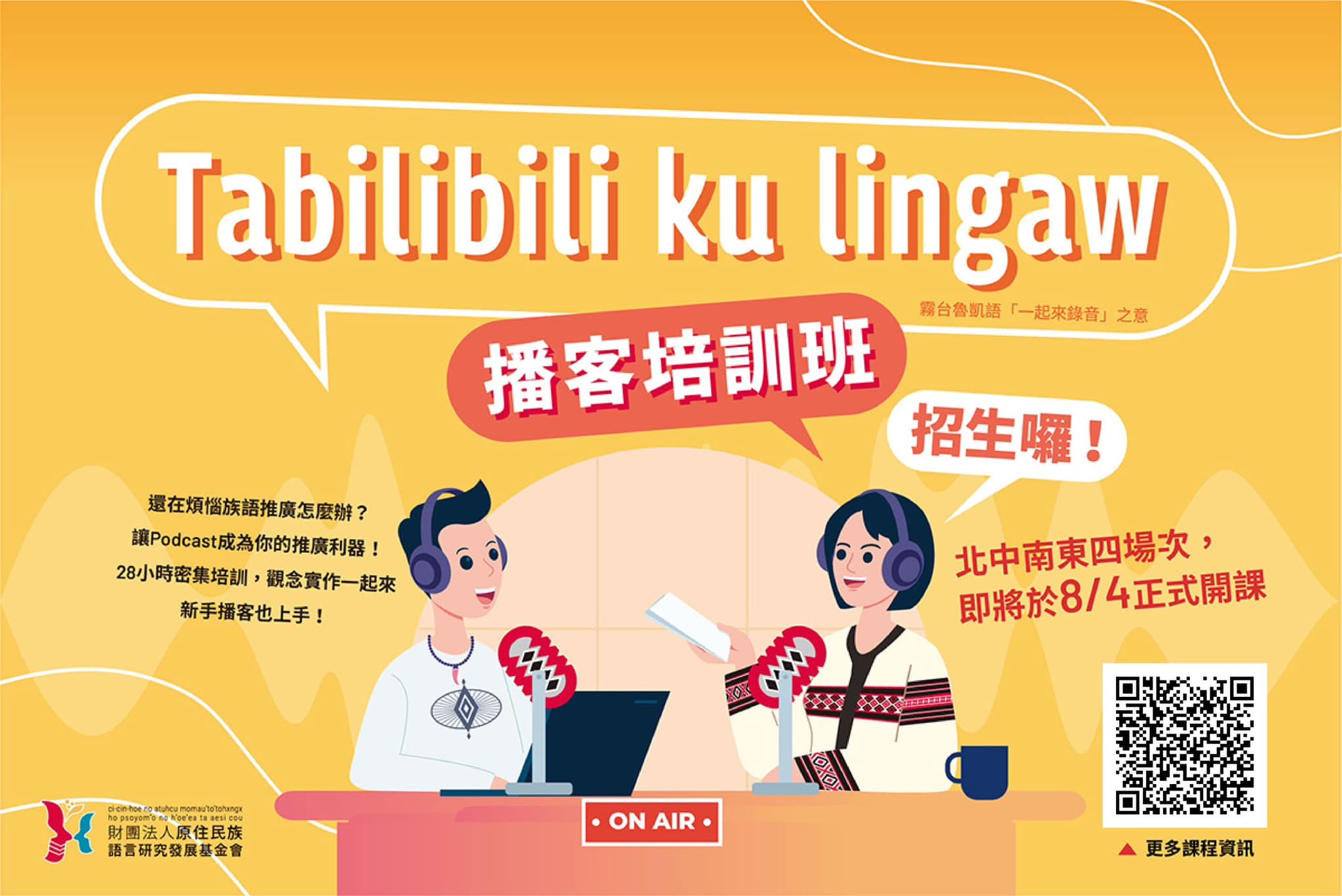 二、為擴散傳承原住民族語言永續之理念,基金會於112年度辦理旨揭培訓課程,期鼓勵大眾運用Podcast平台分享原住民族語言與文化知識,創作以族語或雙語為主體之Podcast 頻道節目,保留珍貴之語言寶藏。