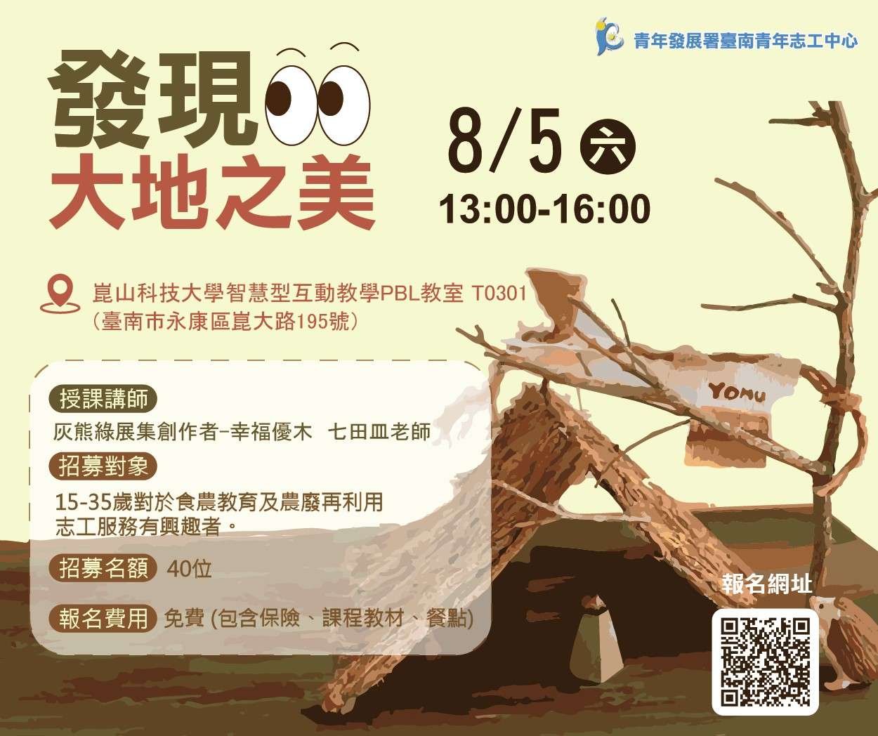 二、主辦機關:教育部青年發展署;承辦單位:青年發展署臺 南青年志工中心(崑山科技大學)。