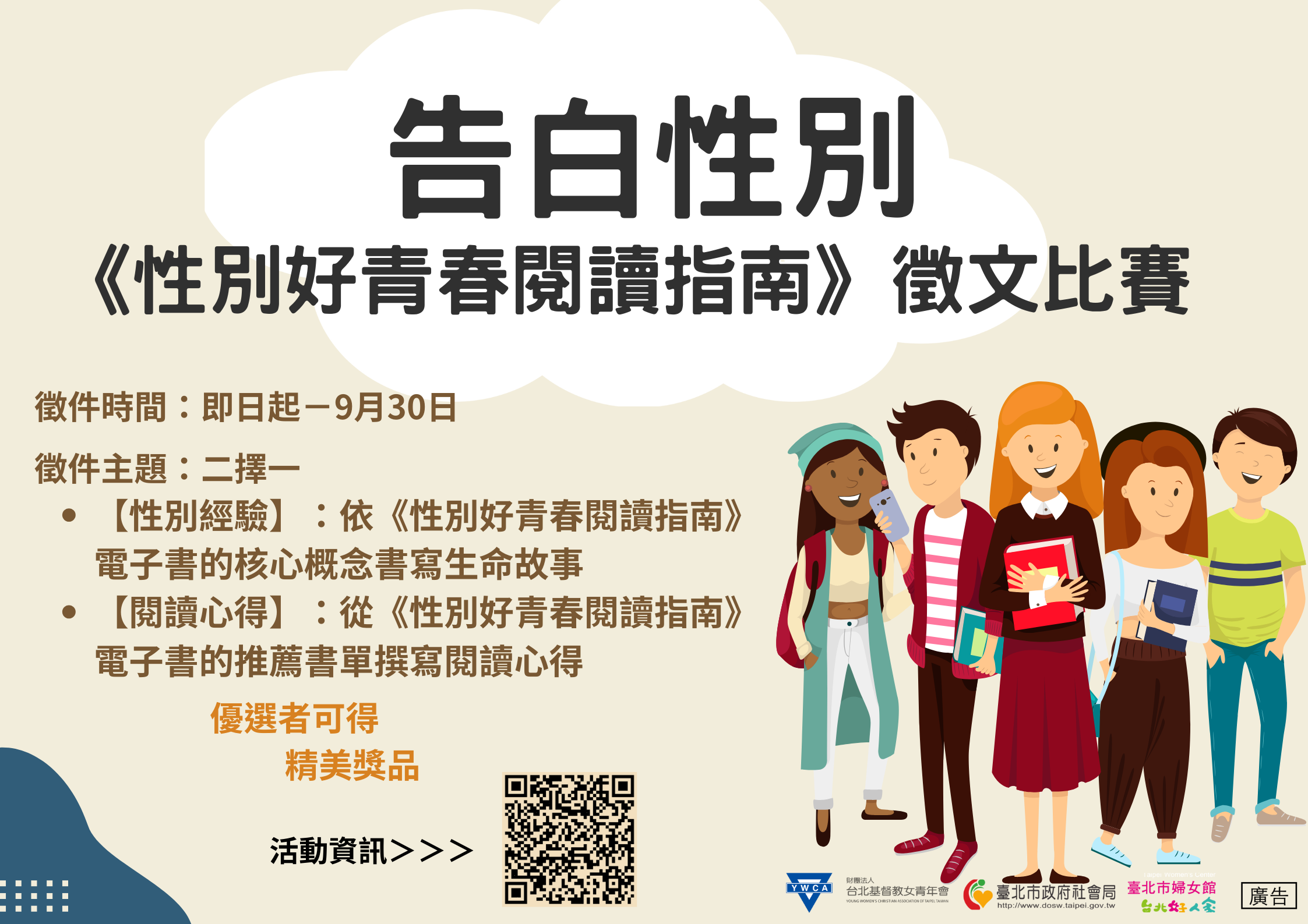 臺北市政府社會局委託台北基督教女青年會經營管理臺北 市婦女館,本計畫的目的係根據臺北市婦女館111年制訂的 性列平等教材《性別好青春閱讀指南》辦理徵文比賽,邀 請青少年、大專院校學生以及一般大眾,述說性別經驗或 閱讀心得。