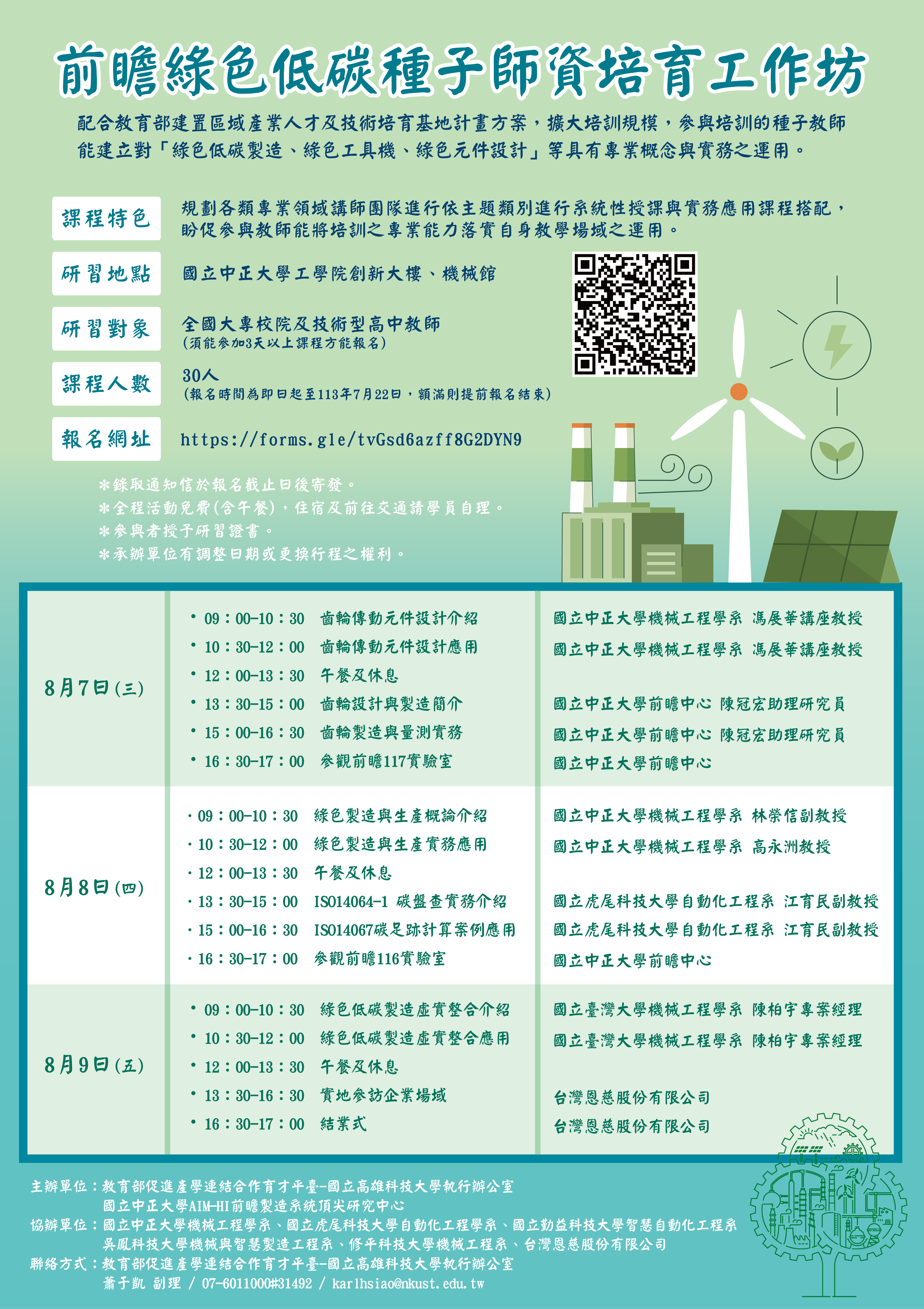 (三)課程人數:30人 (報名時間為即日起至113年7月22日,額滿則提前報名結束)。
