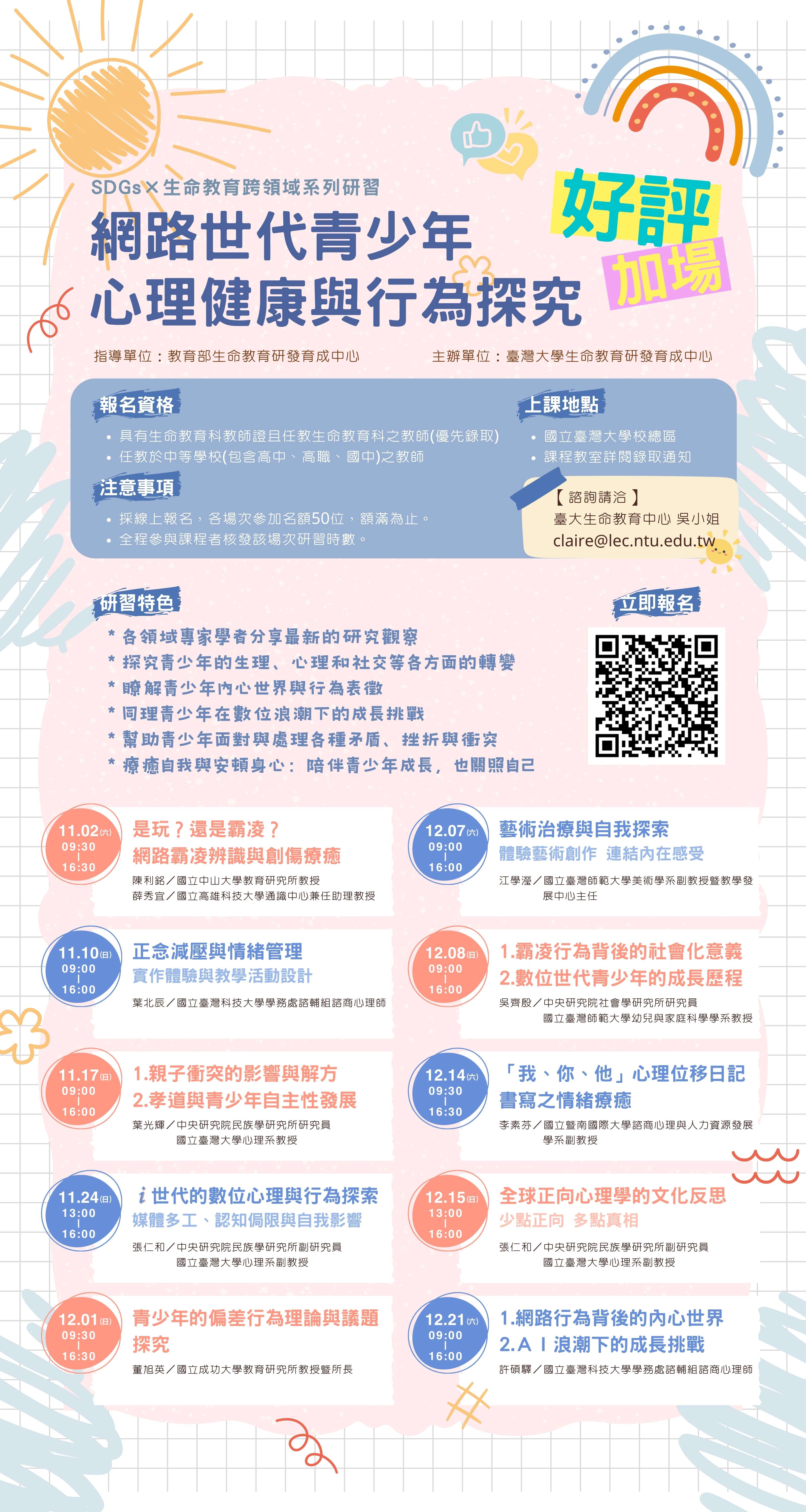 研習活動詳情請參閱附件,有意參加者,請需完成簽奉核准參與、並自行完成報名、請假等事宜。