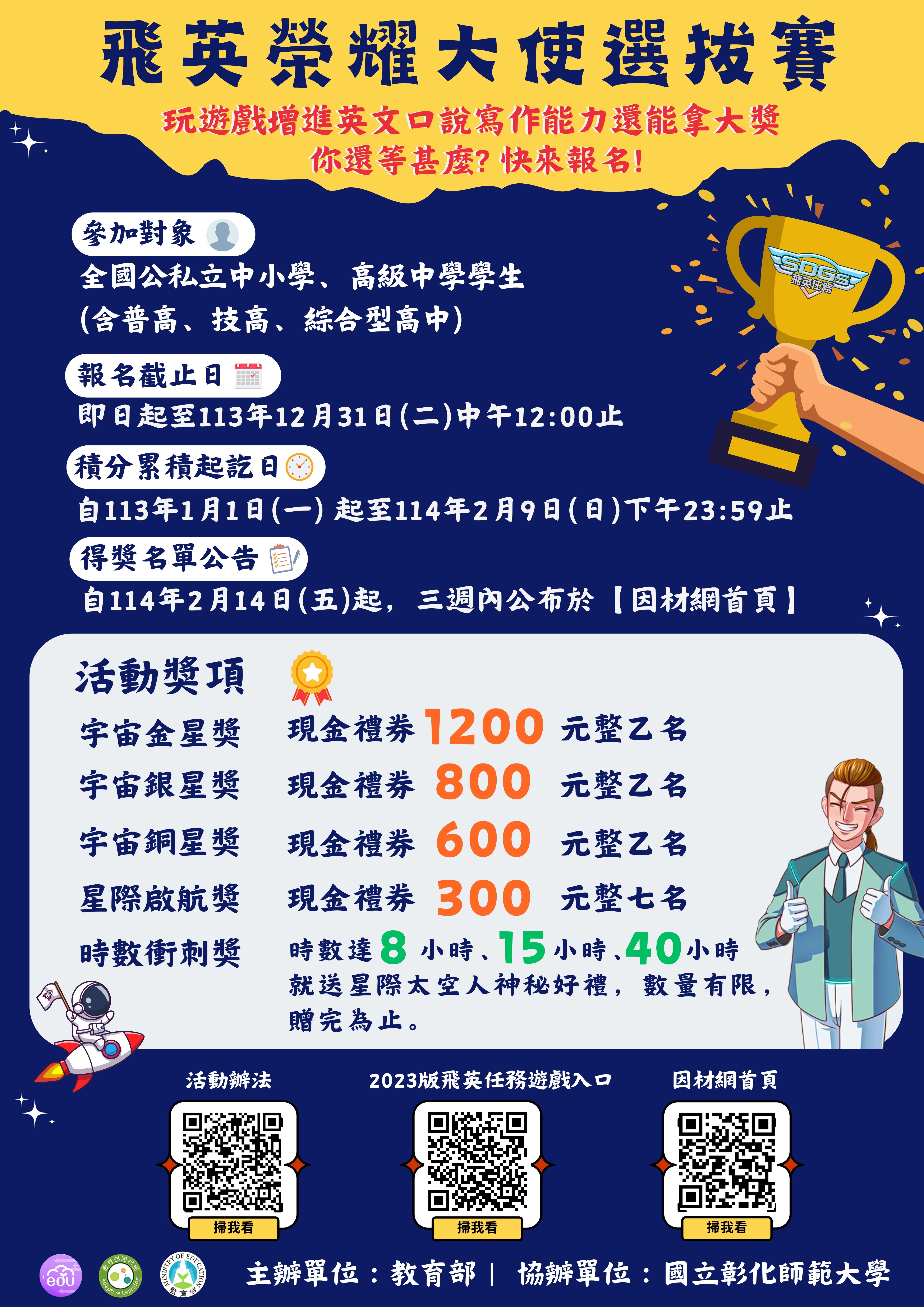 轉知國立彰化師範大學『高中英語文口說及寫作遊戲開發與推廣計畫』辦理之「SDGs 飛英大使年度排行榜積分賽」