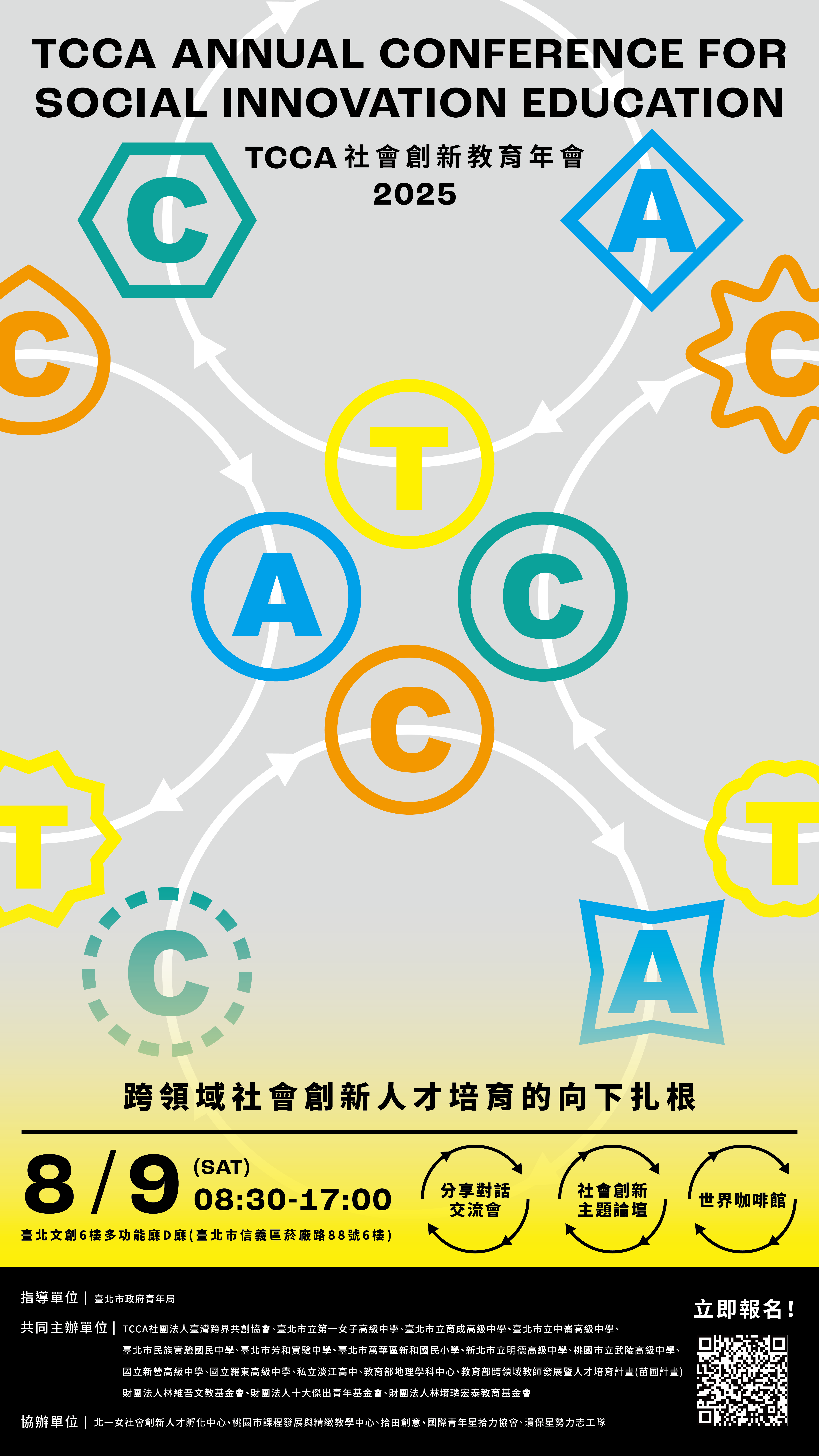 (三)年會活動議程與分享者介紹、報名表單連結、活動內容異動,敬請參見: FB粉絲團_臺灣跨界共創協會粉絲團https://www.facebook.com/TCCA0803
