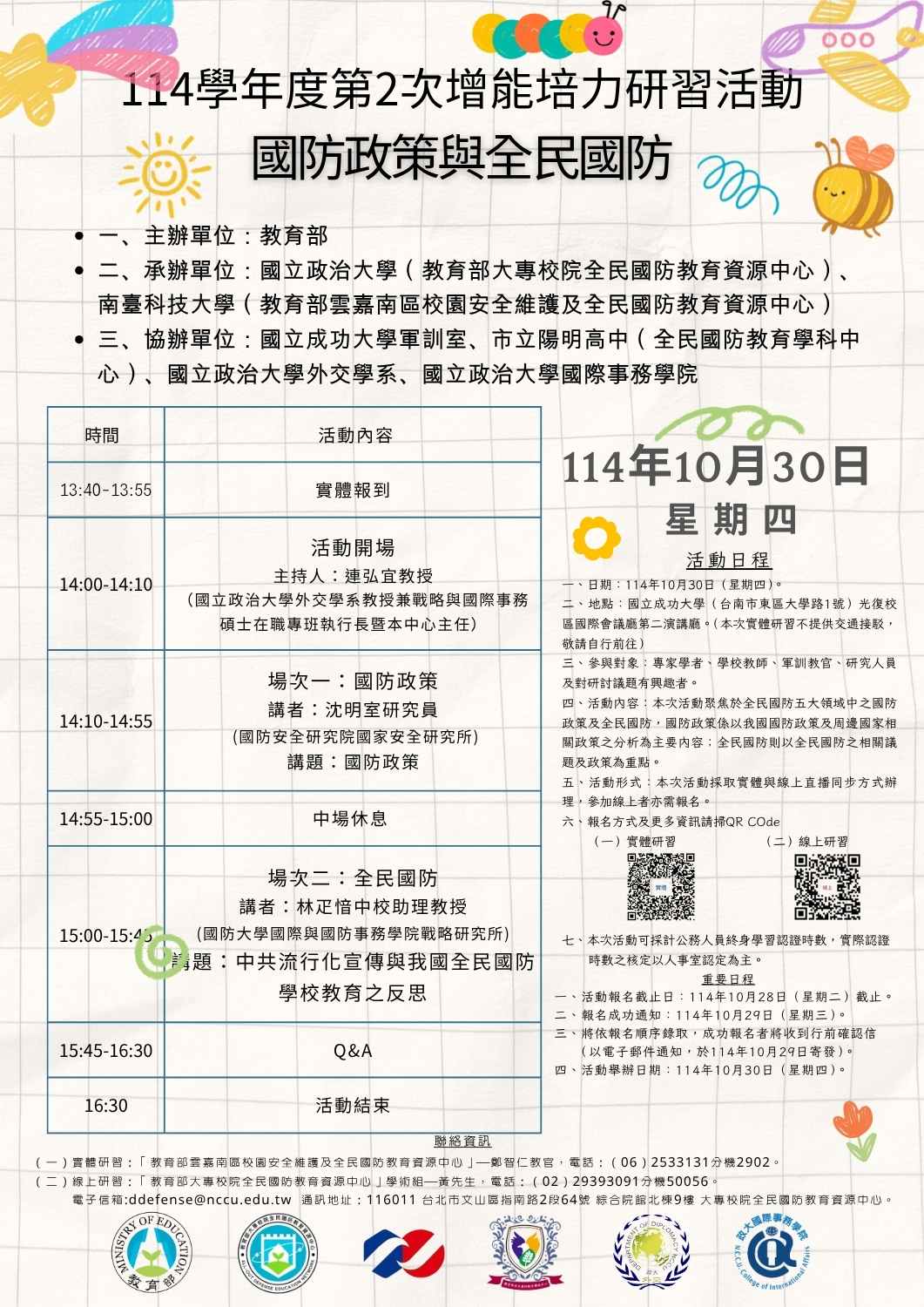 舉辦時間:114年10月30日(星期四) 下午2時00分至4時30 分。