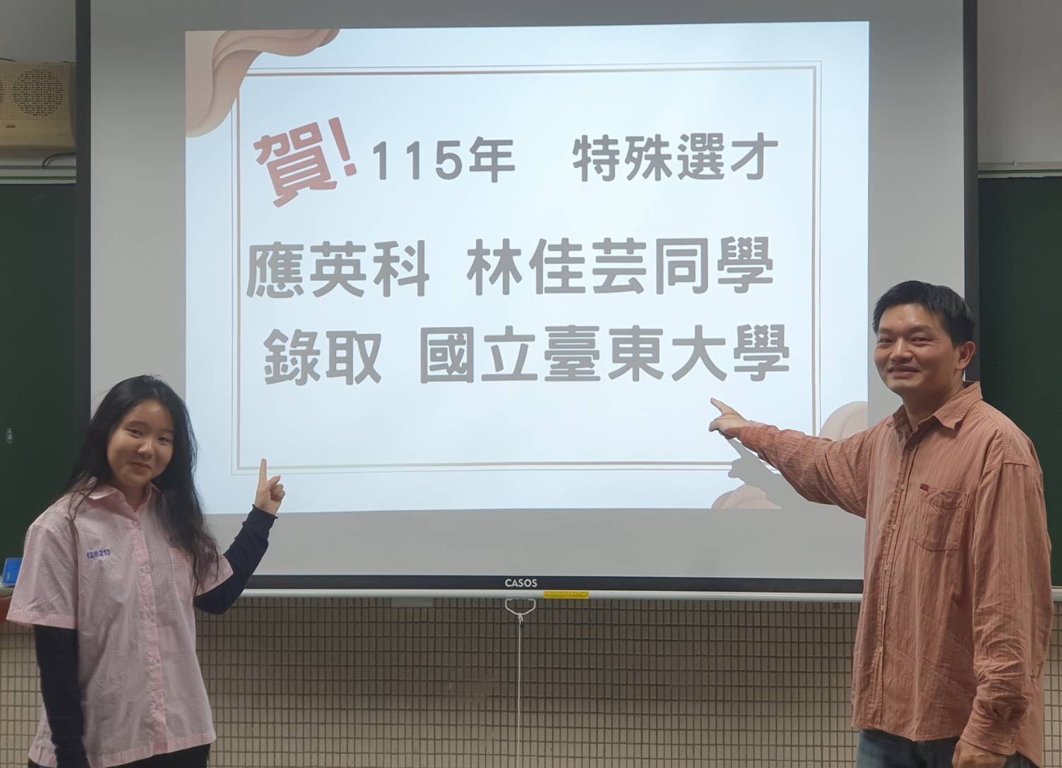 這唯一一位正取生就是我們內湖高工應三孝林佳芸同學,